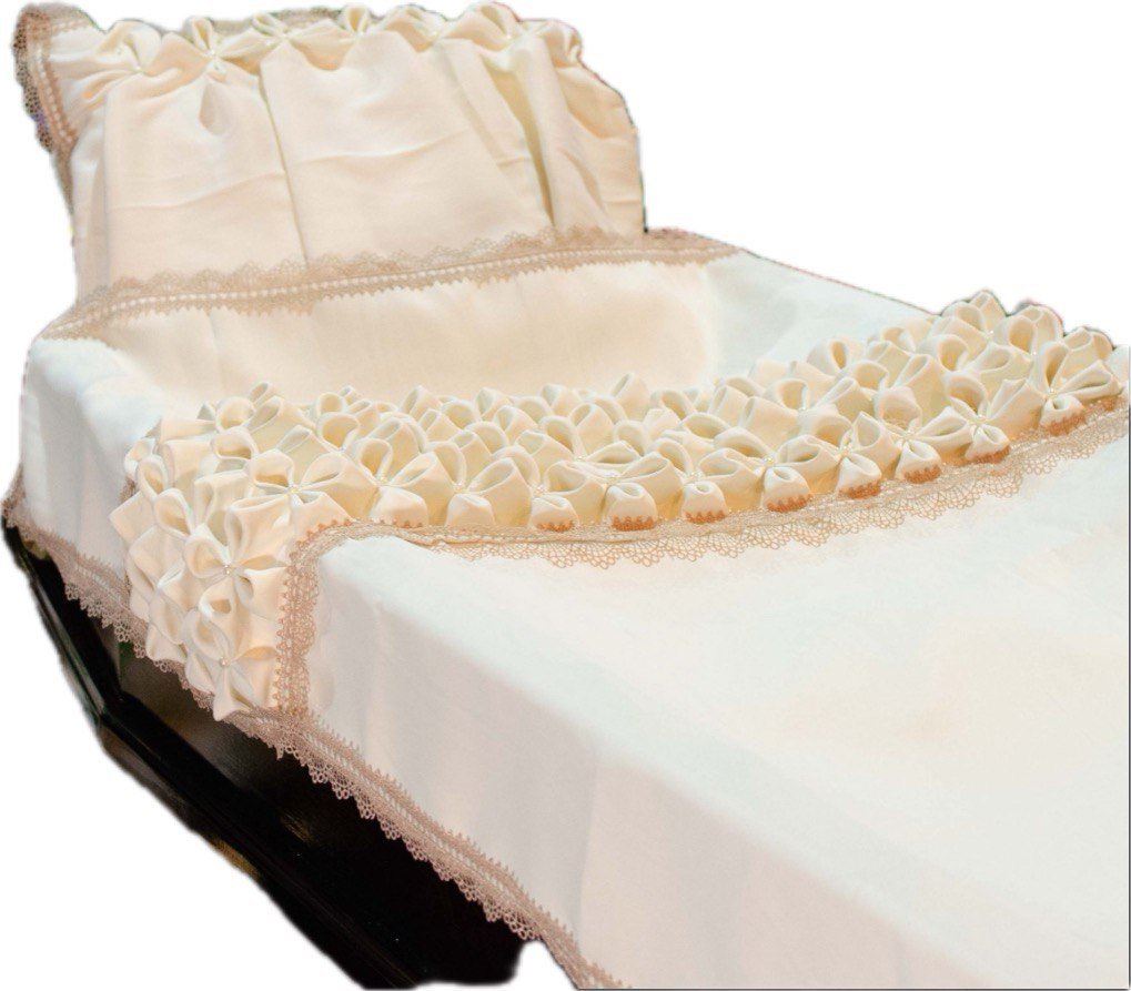 Комплект для погребения «Жемчужина» блэкаут. В комплект входит покрывало и подушка. Производится в двух цветах на выбор: белый и бежевый.