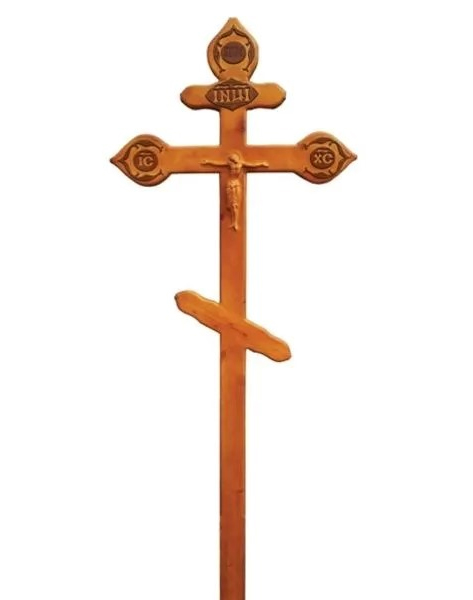 Большой, красивый и элегантный православный крест из сосны с распятием. Крест имеет фигурную форму и является классическим символом на могиле. Его легко устанавливать на могилу, а качественное исполнение позволяет оставить его на долгое время.